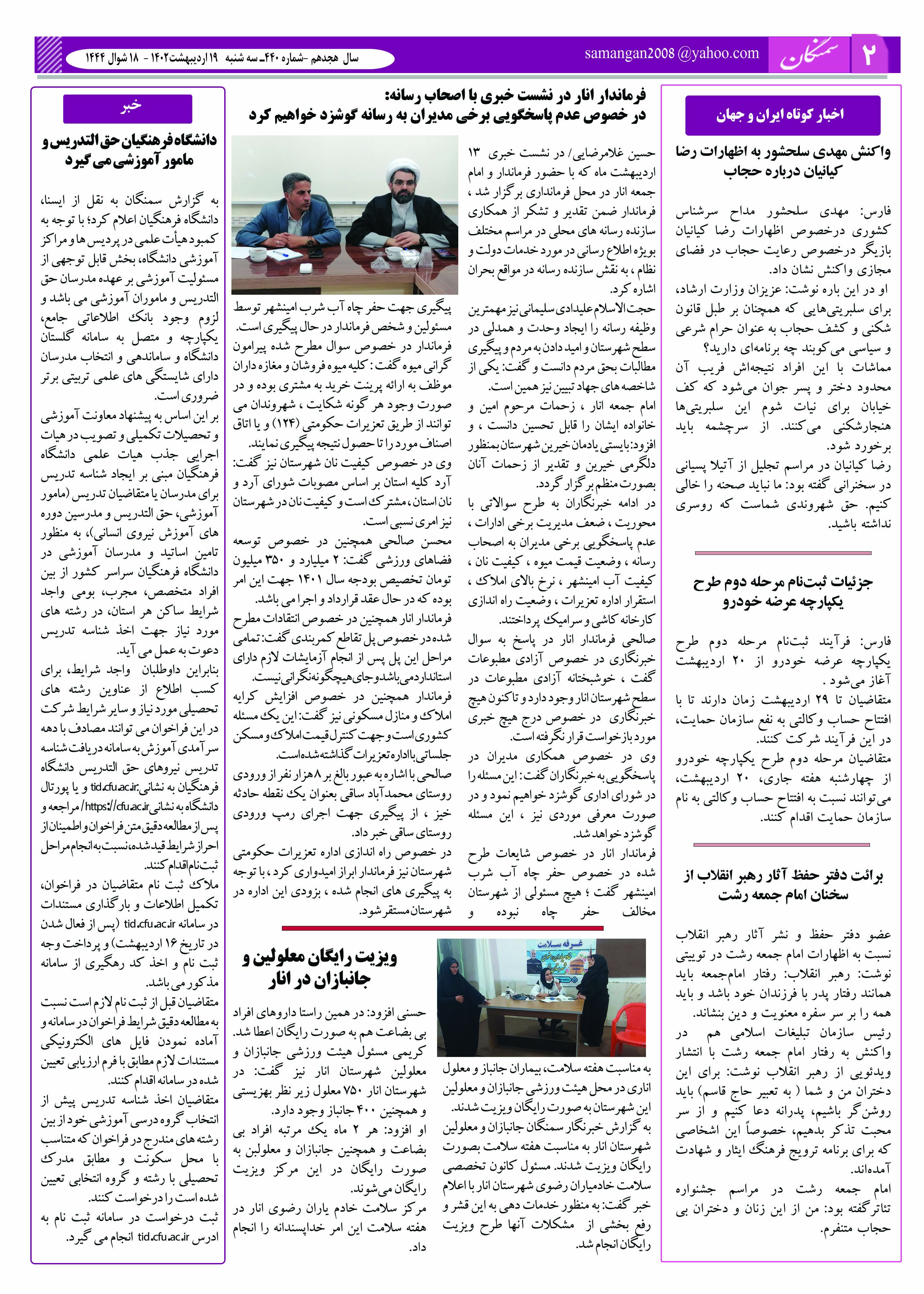 آرشیو سال 1402 آرشیو نشریه سمنگان ۲۸ اردیبهشت ۱۴۰۲۲۸ اردیبهشت ۱۴۰۲ نشریه سمنگان شماره 440 توسط :مدیر سایت بدون دیدگاه سمنگان 440, نشریه سمنگان برای بهترخوانده شدن نشریه روی صفحات آن کلیک کنید