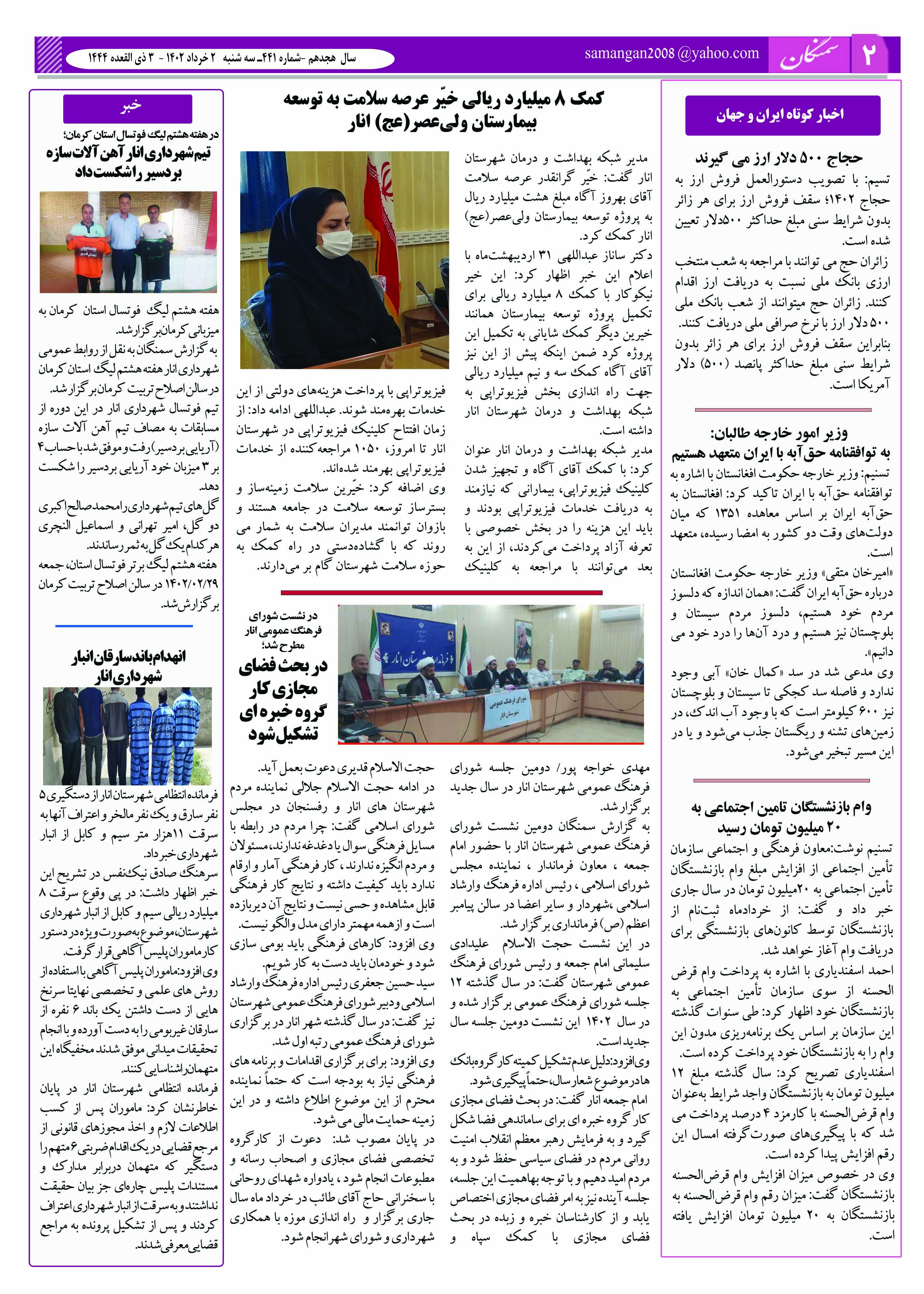 آرشیو سال 1402 آرشیو نشریه سمنگان ۱۸ خرداد ۱۴۰۲۱۱ تیر ۱۴۰۲ نشریه سمنگان شماره 441 توسط :مدیر سایت بدون دیدگاه سمنگان441, نشریه سمنگان