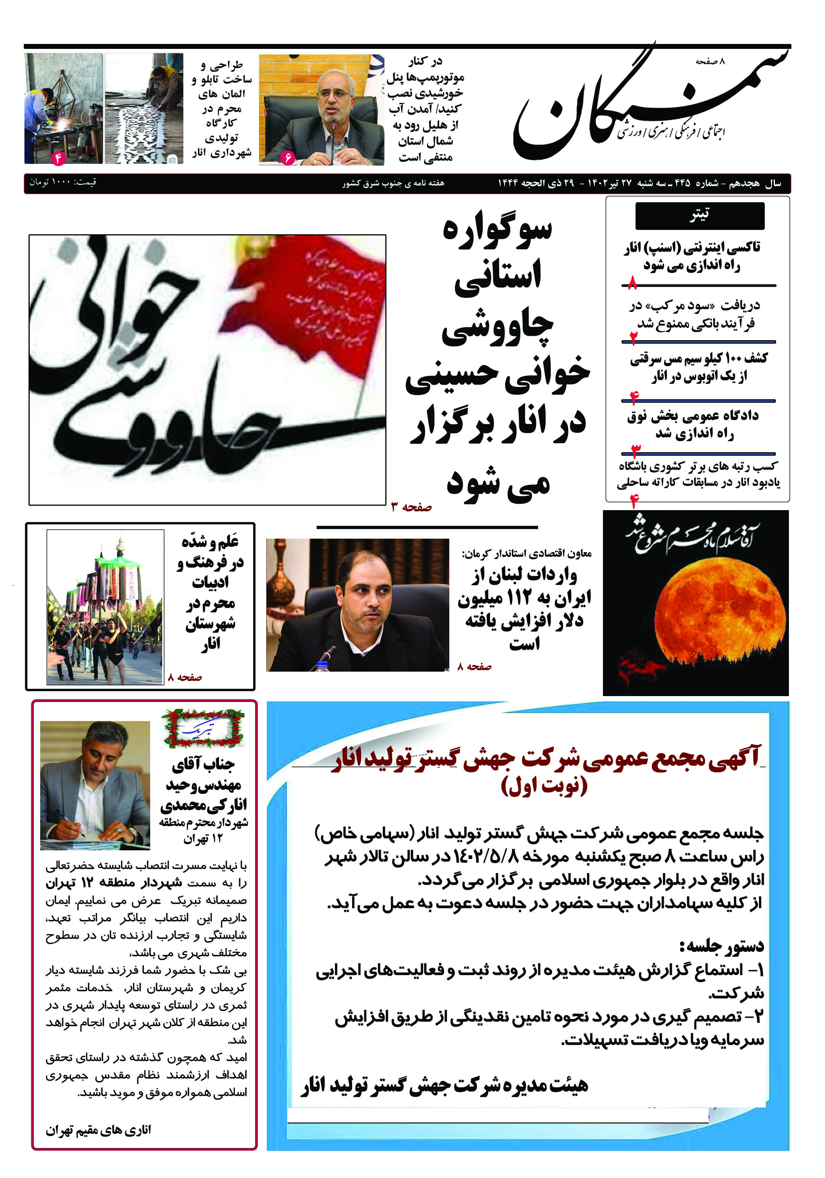 آرشیو سال 1402 آرشیو نشریه سمنگان ۹ مرداد ۱۴۰۲ نشریه سمنگان شماره 445 توسط :مدیر سایت بدون دیدگاه سمنگان 445, نشریه سمنگان برای بهتر خوانده شدن نشریه روی صفحات آن کلیک کنید