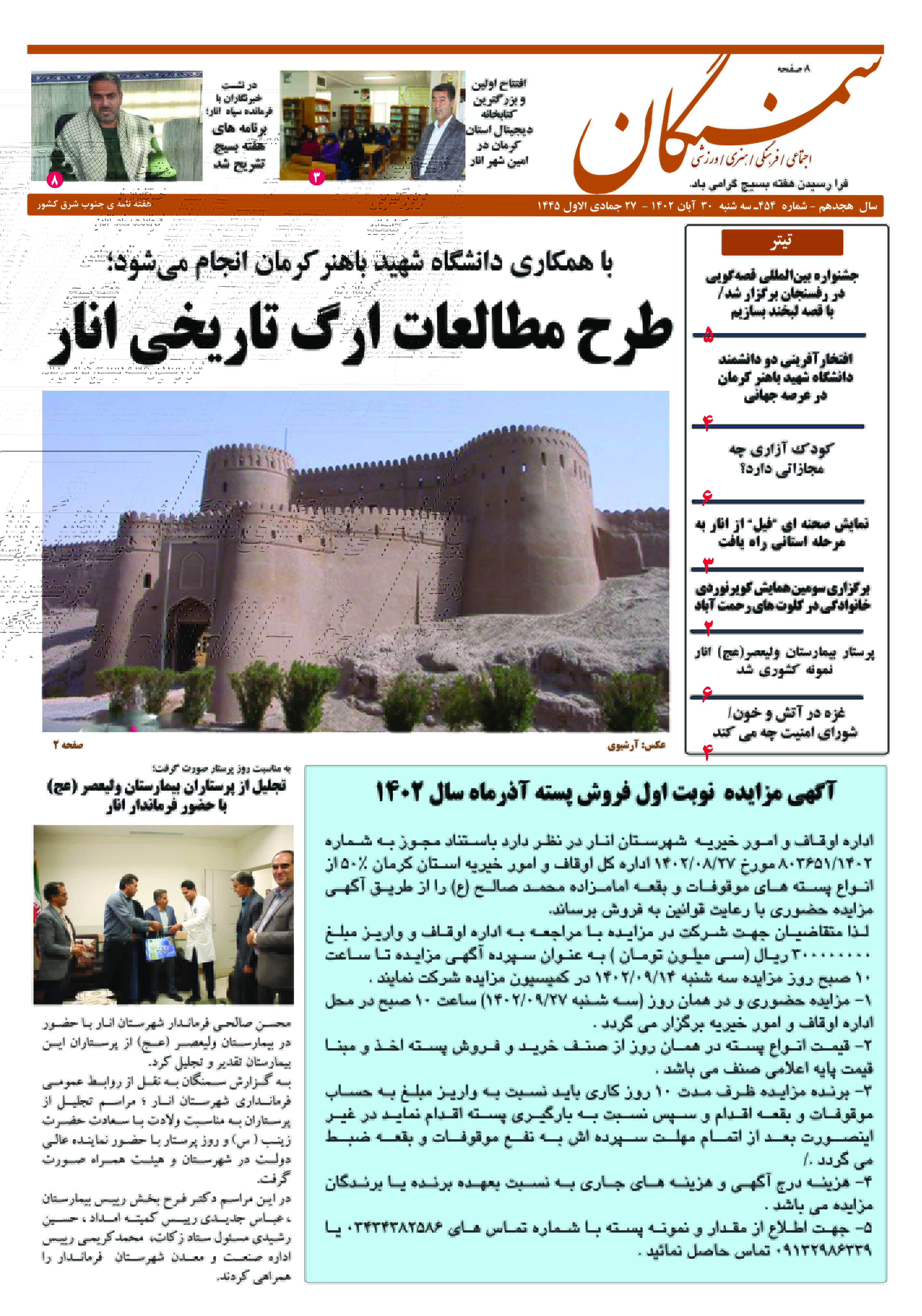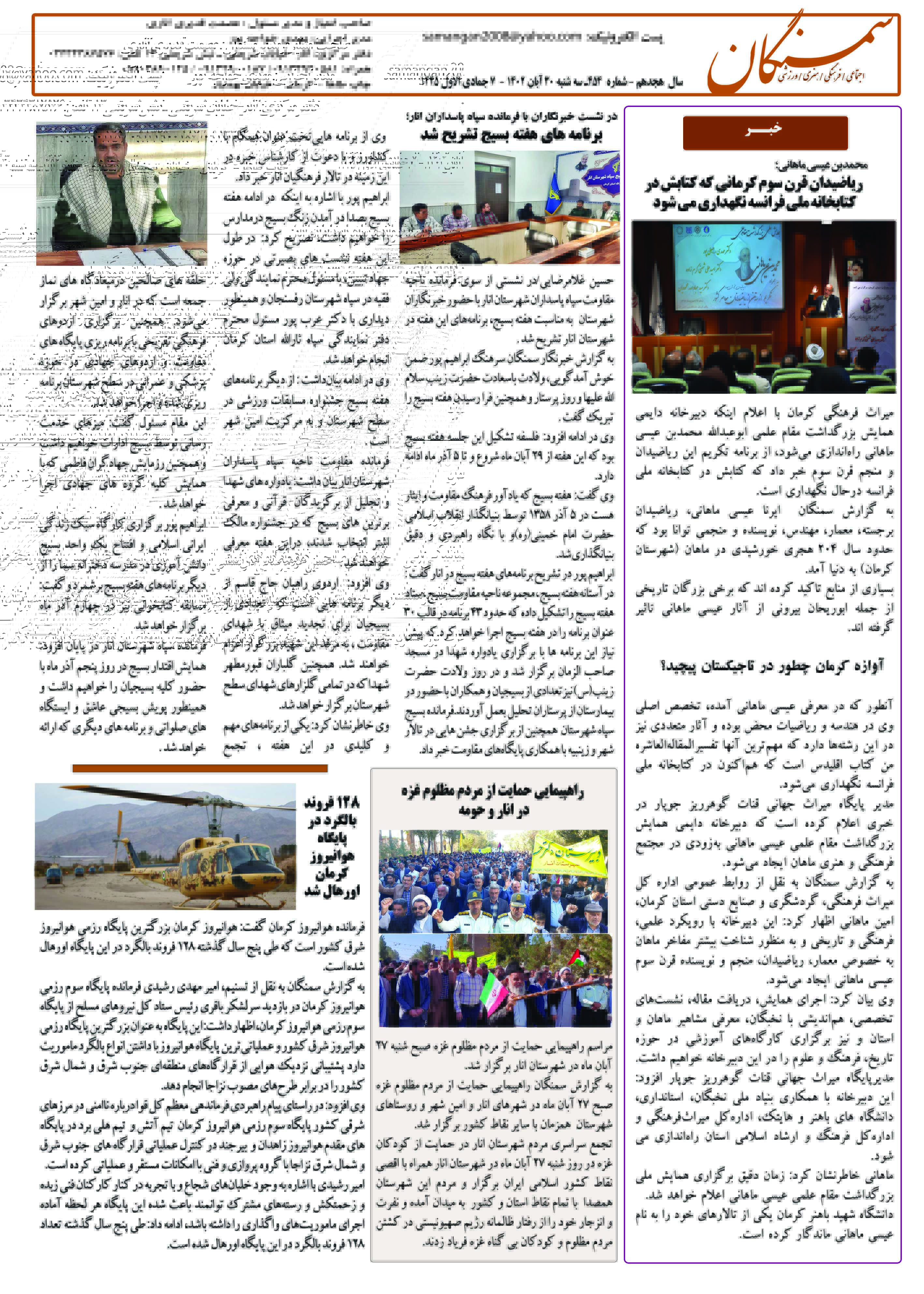 آرشیو سال 1402 آرشیو نشریه سمنگان ۲۴ آذر ۱۴۰۲ نشریه سمنگان شماره 454 توسط :مدیر سایت بدون دیدگاه سمنگان 454, نشریه سمنگان برای بهتر خواندن نشریه روی صفحات آن کلیک کنید.