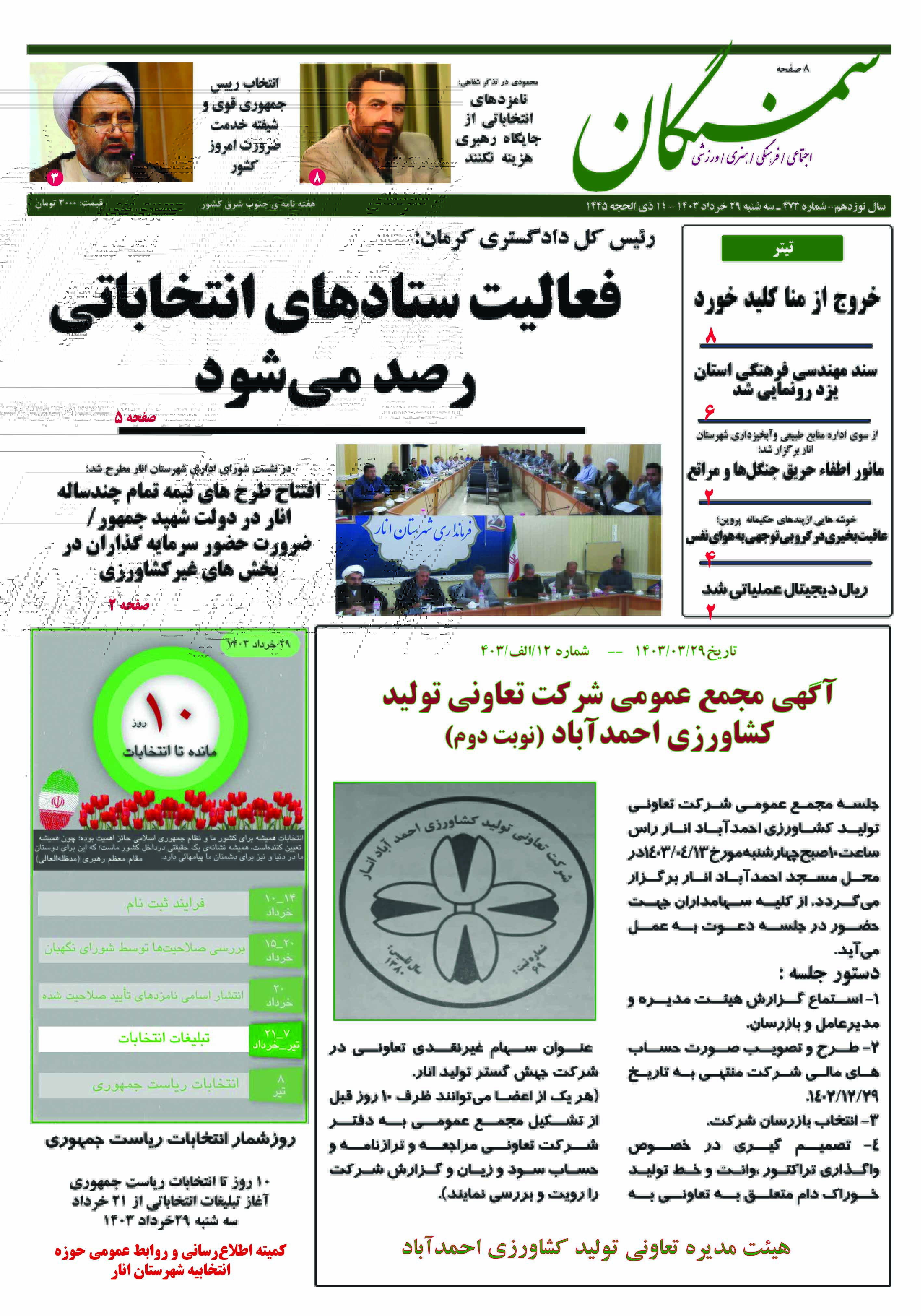 آرشیو سال 1403 آرشیو نشریه سمنگان ۱۳ تیر ۱۴۰۳۲۵ تیر ۱۴۰۳ نشریه سمنگان شماره 473 توسط :مدیر سایت بدون دیدگاه سمنگان 473, نشریه سمنگان برای بهتر دیده شدن نشریه روی صفححات کلیک کنید.