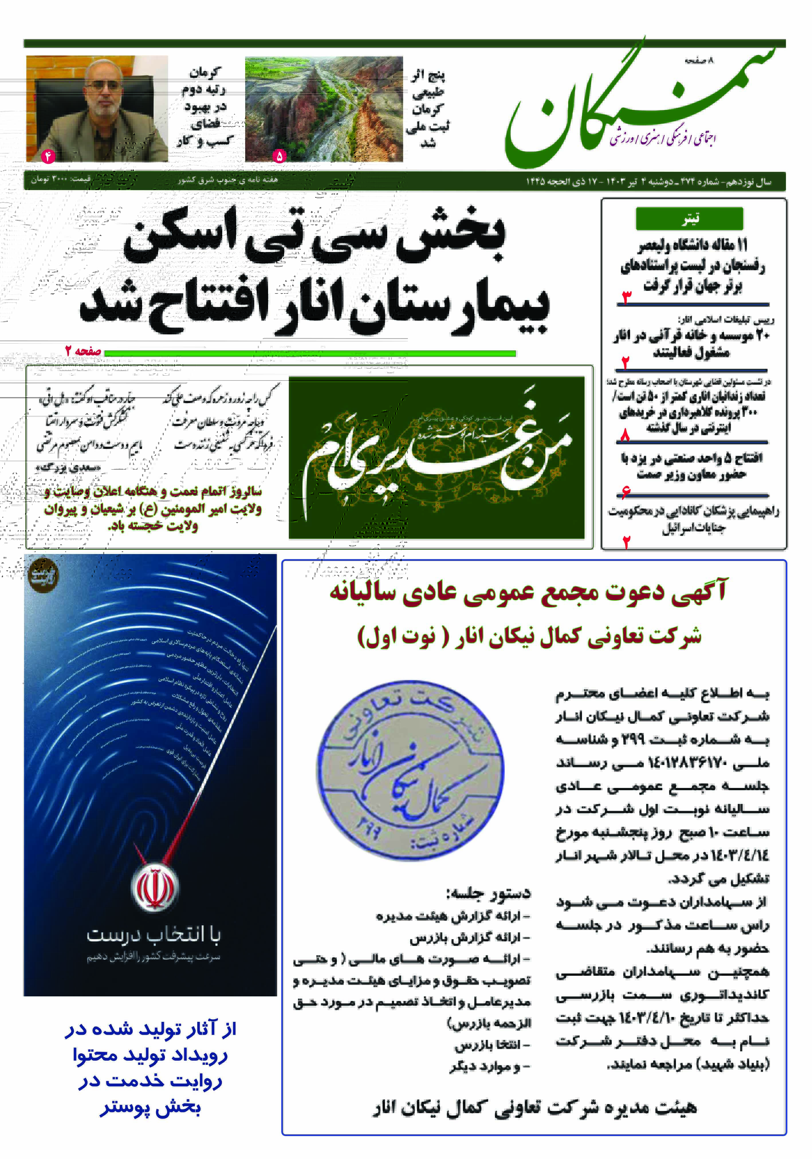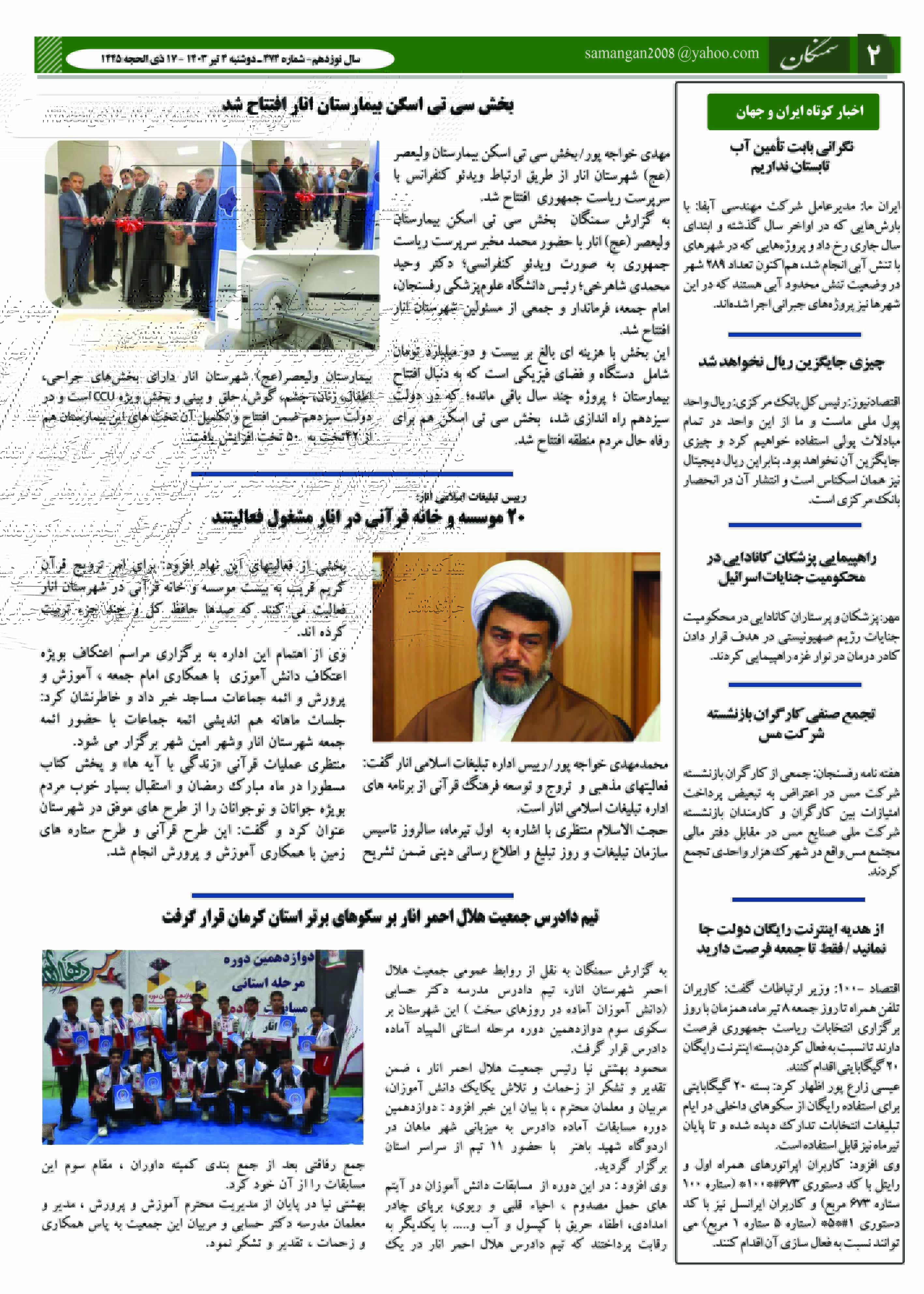 آرشیو سال 1403 آرشیو نشریه سمنگان ۱۳ تیر ۱۴۰۳ نشریه سمنگان شماره 474 توسط :مدیر سایت بدون دیدگاه سمنگان 474, نشریه سمنگان برای بهتر دیده شدن نشریه روی صفحات کلیک کنید.