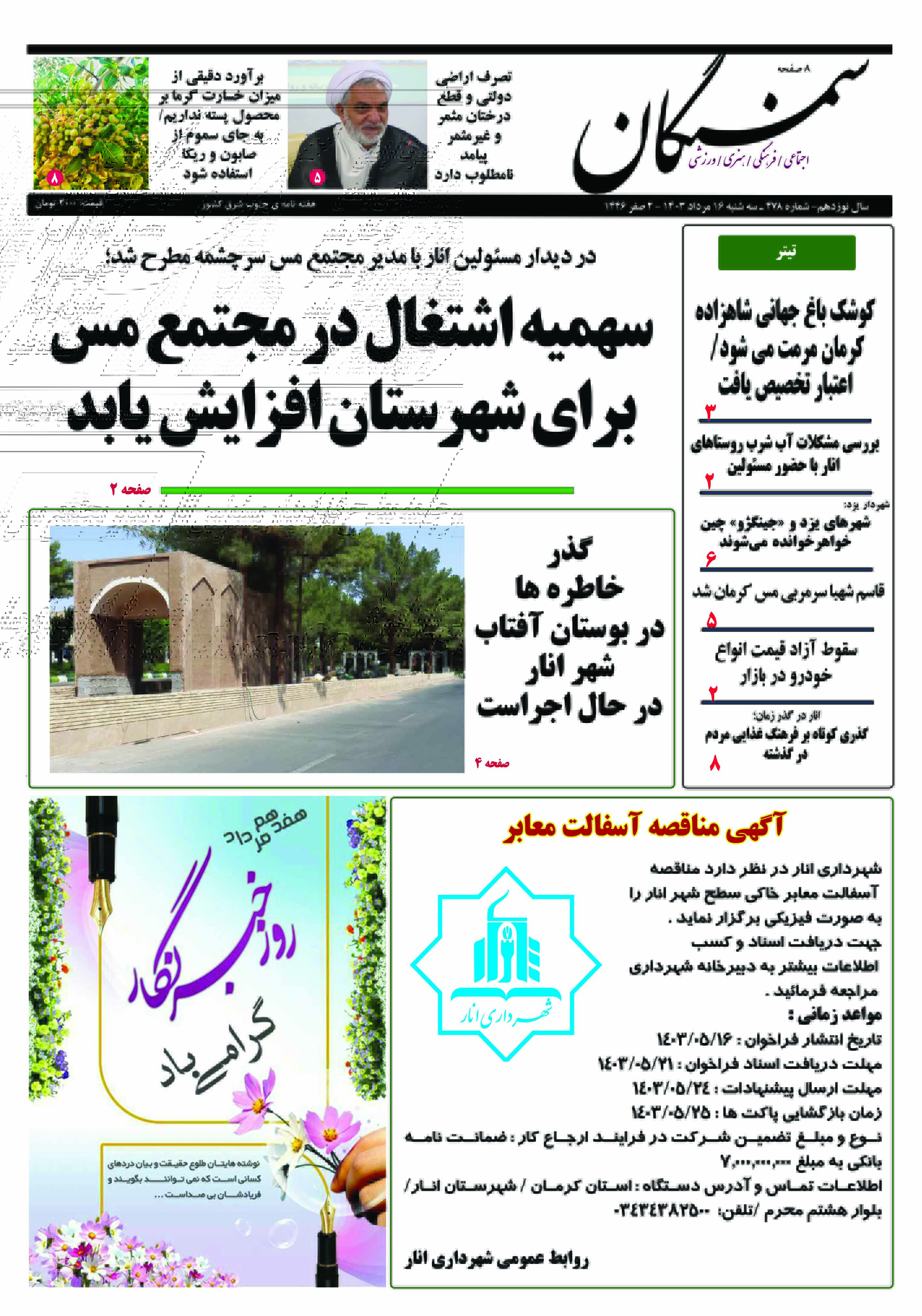 آرشیو سال 1403 آرشیو نشریه سمنگان ۸ شهریور ۱۴۰۳۷ شهریور ۱۴۰۳ نشریه سمنگان شماره 478 توسط :مدیر سایت بدون دیدگاه سمنگان 478, نشریه سمنگان برای بهتر خواندن نشریه روی صفحات کلیک کنید.