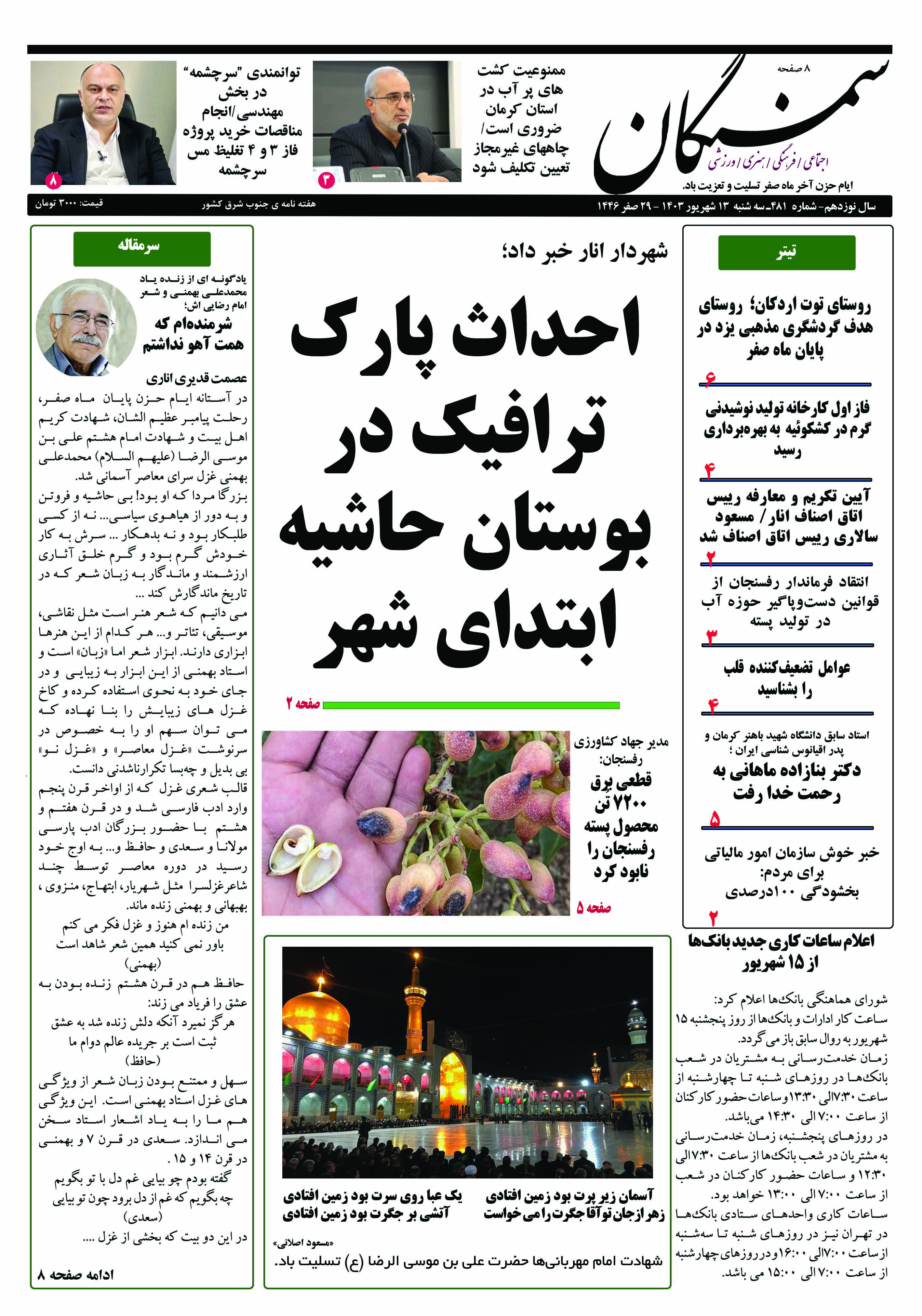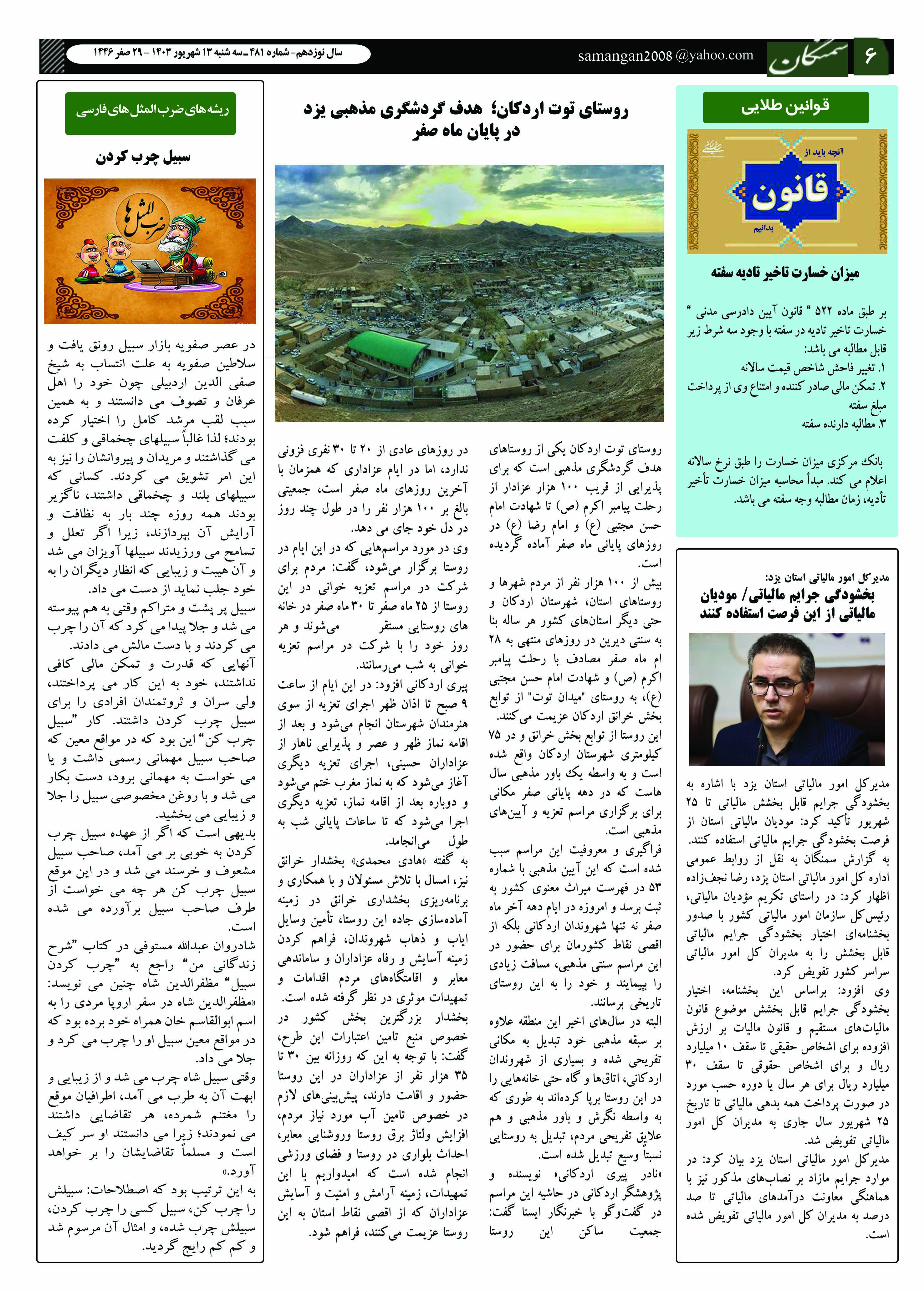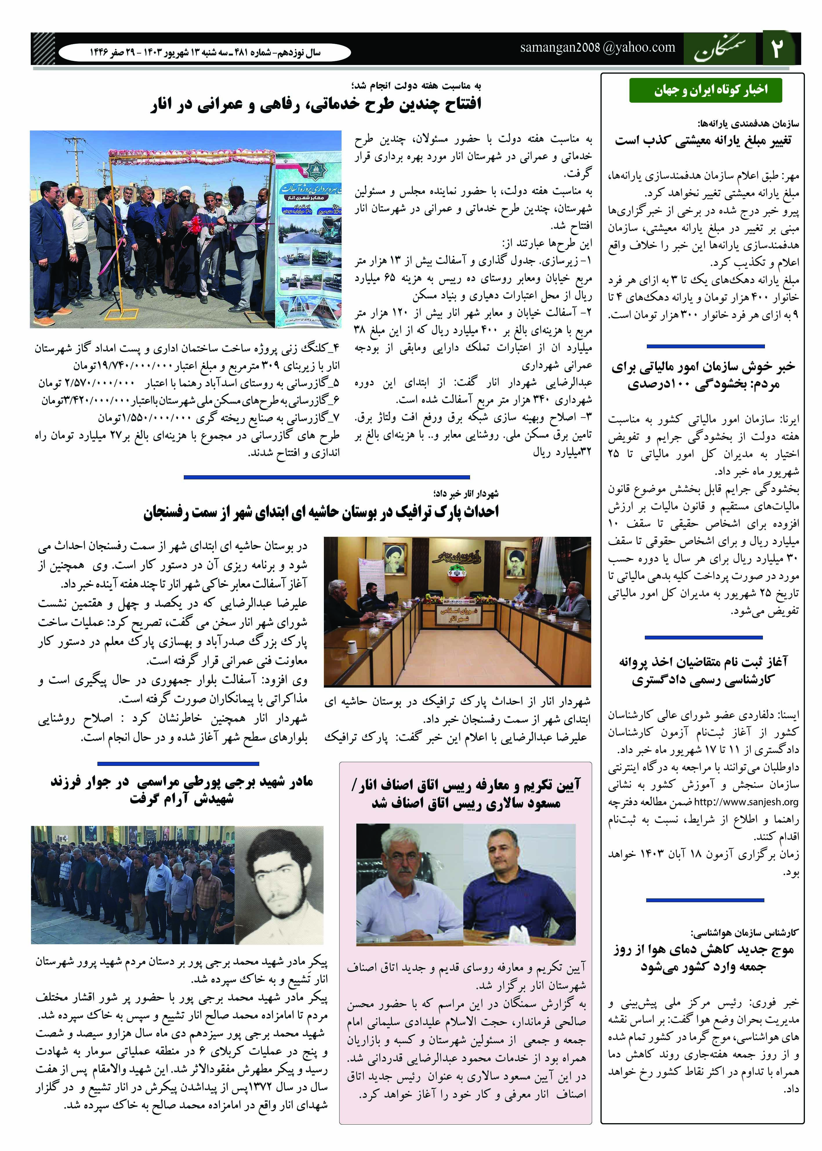 آرشیو سال 1403 آرشیو نشریه سمنگان ۱۶ شهریور ۱۴۰۳۱۶ شهریور ۱۴۰۳ نشریه سمنگان شماره 481 توسط :مدیر سایت بدون دیدگاه شماره 481, نشریه سمنگان برای بهتر خواندن نشریه روی صفحات کلیک کنید.