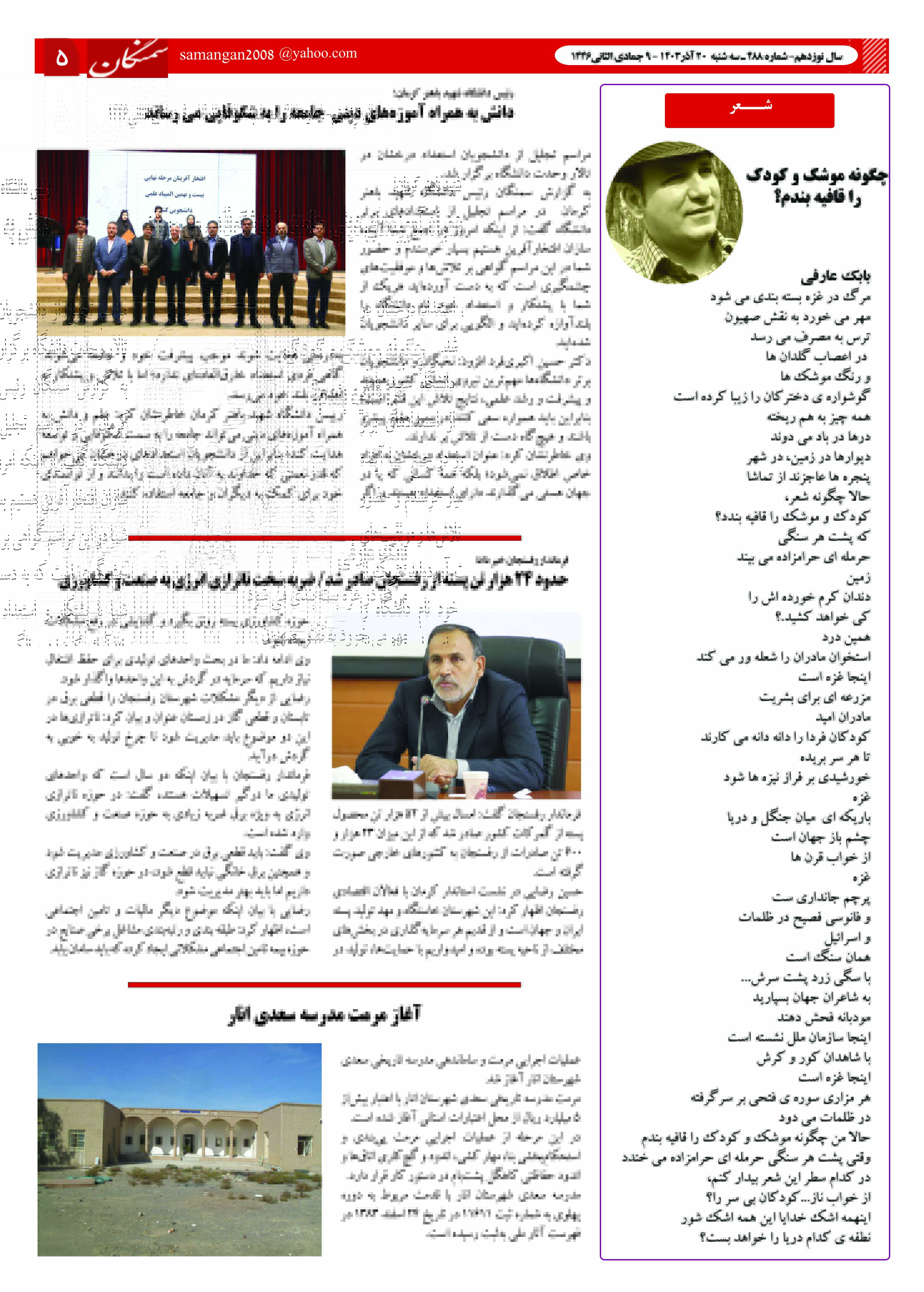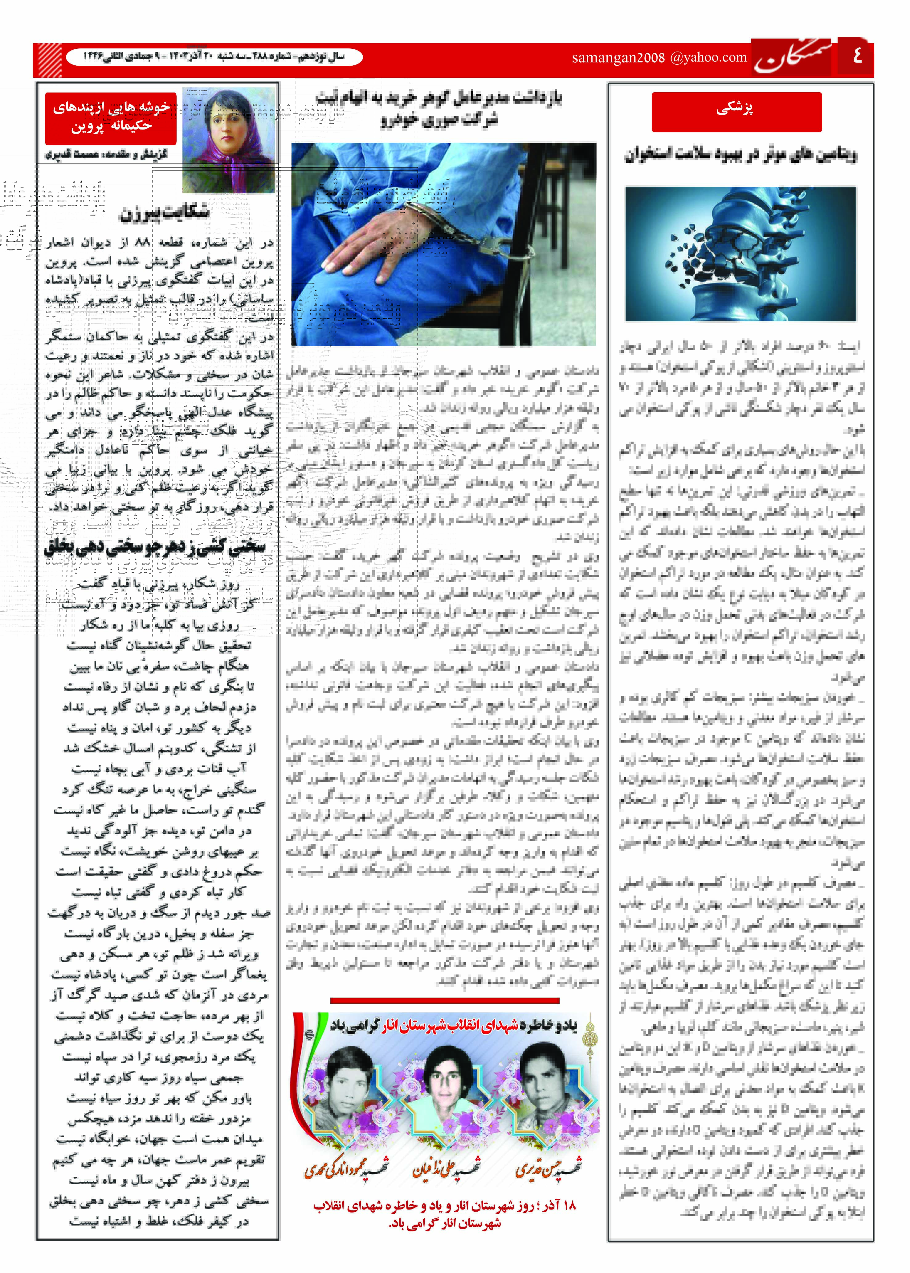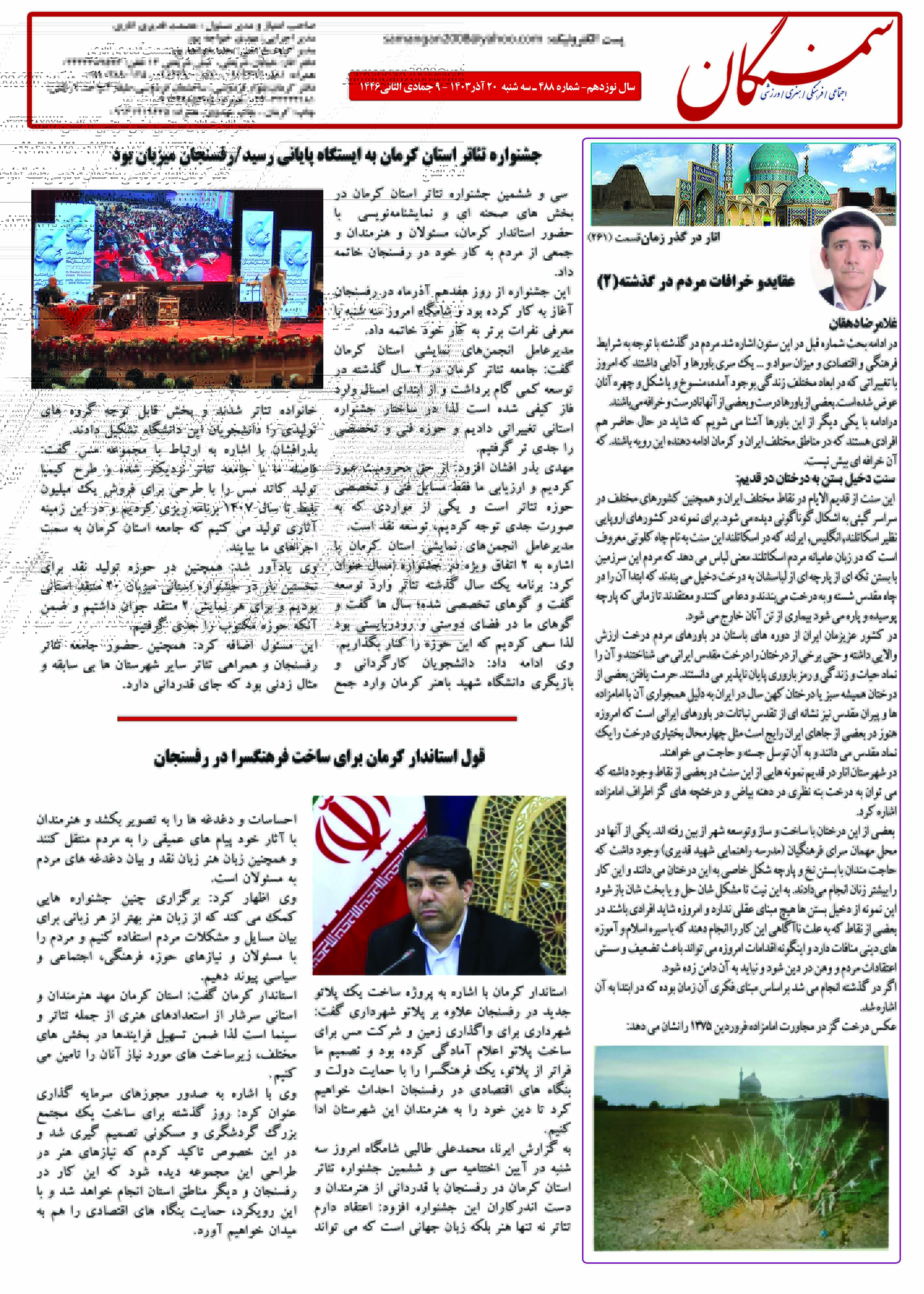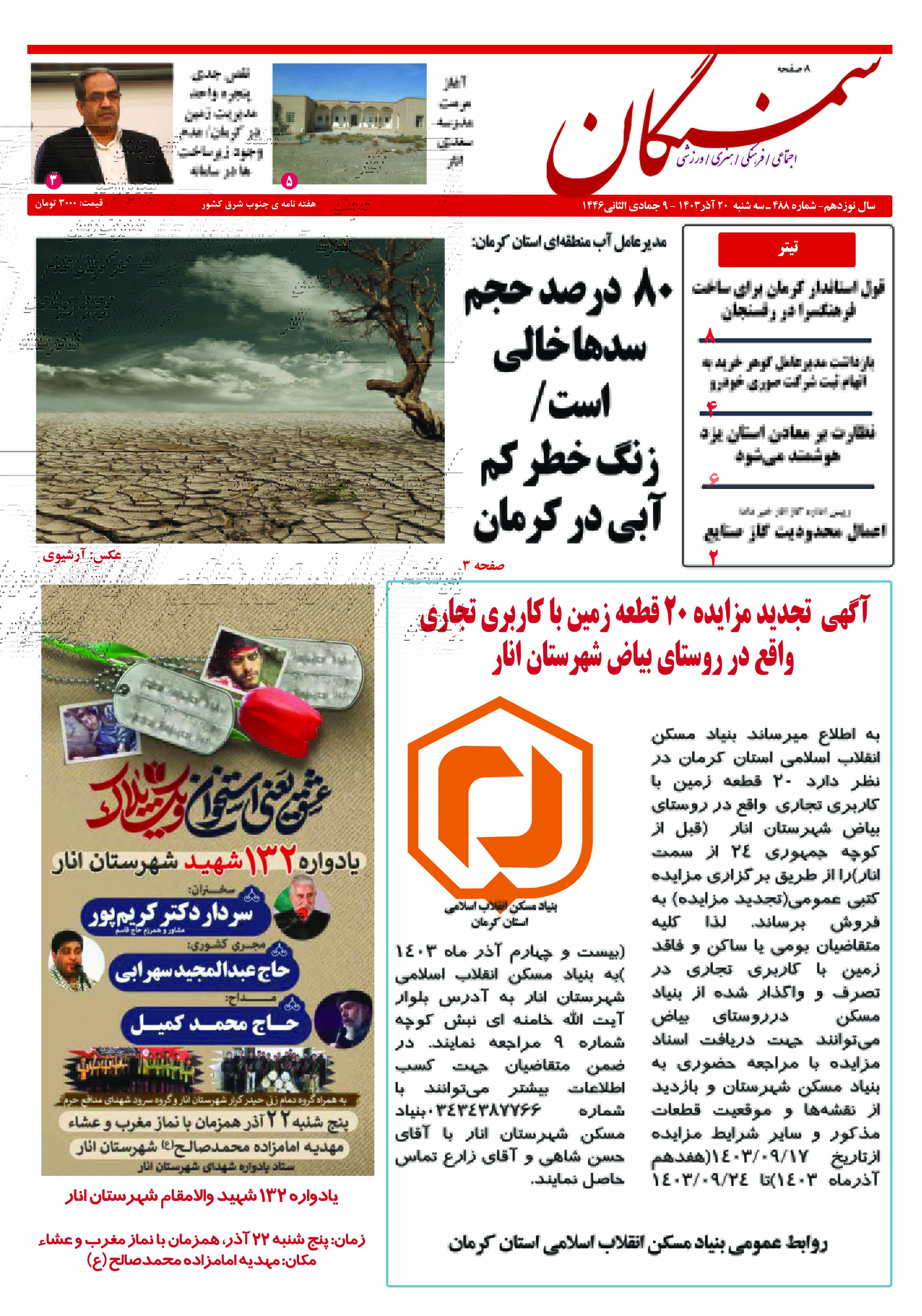 آرشیو سال 1403 دستهبندی نشده ۲۴ آذر ۱۴۰۳ نشریه سمنگان شماره 488 توسط :مدیر سایت بدون دیدگاه سمنگان 488, نشریه سمنگان