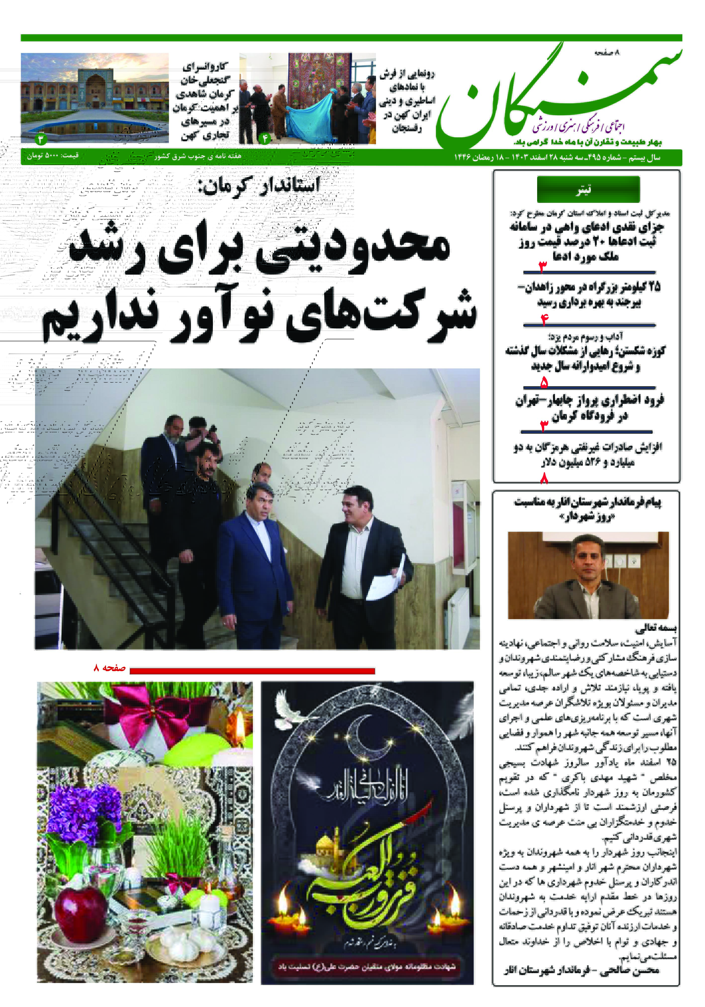 آرشیو سال 1404 آرشیو نشریه سمنگان ۵ فروردین ۱۴۰۴۲۷ تیر ۱۴۰۴ نشریه سمنگان شماره 495 توسط :مدیر سایت بدون دیدگاه سمنگان 495, نشریه سمنگان برای بهتر خواندن نشریه رویی صفحات کلیک کنید.