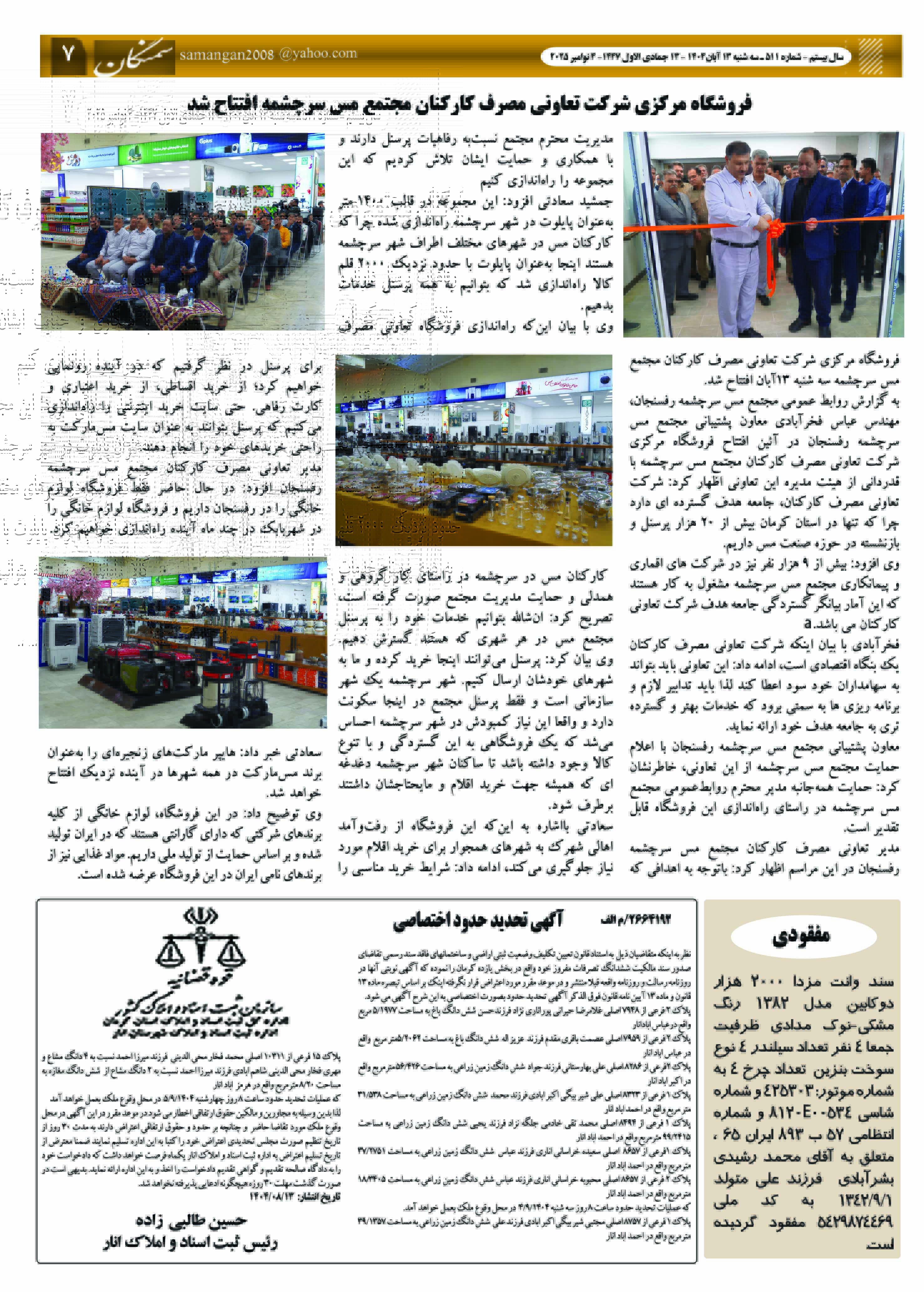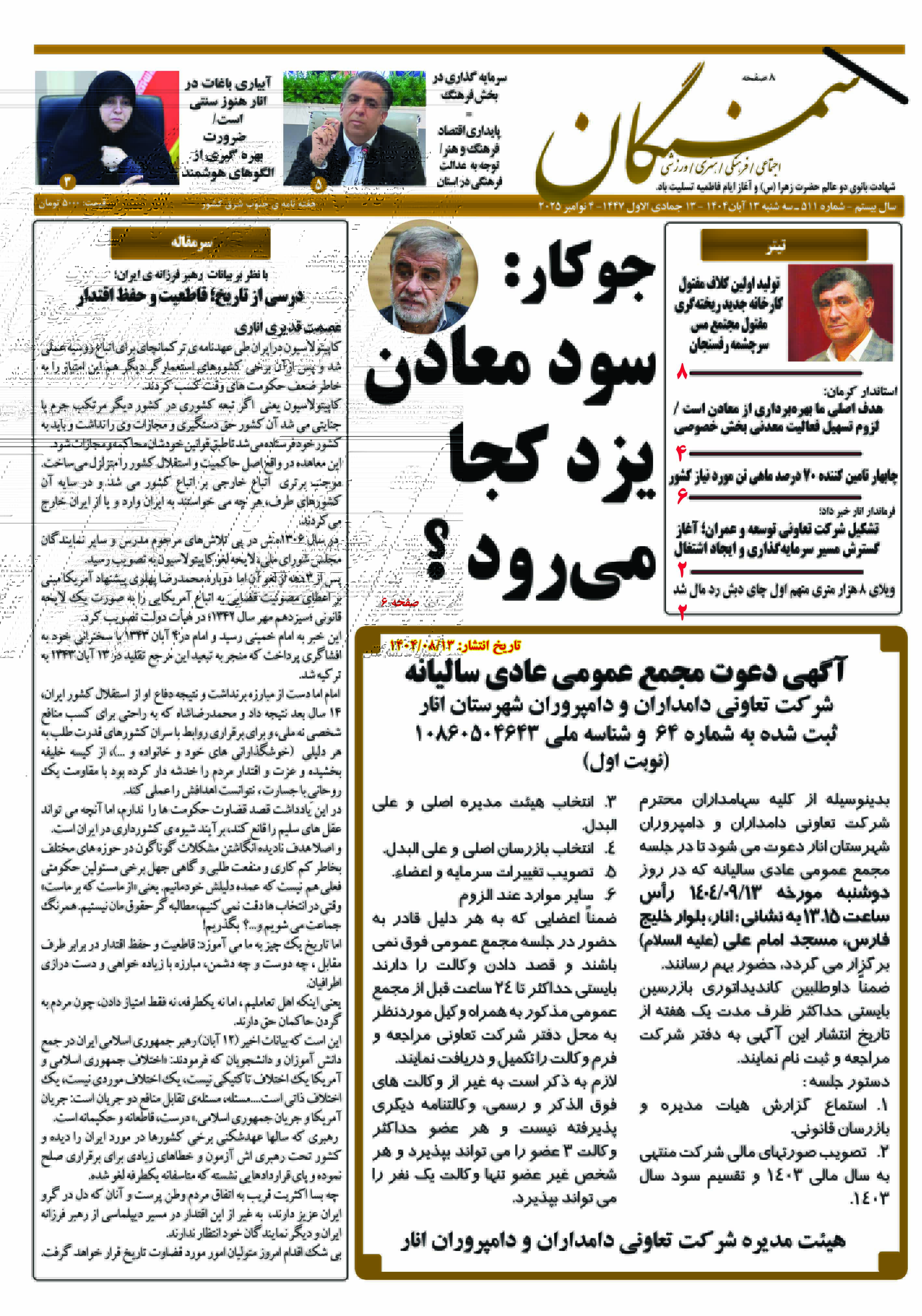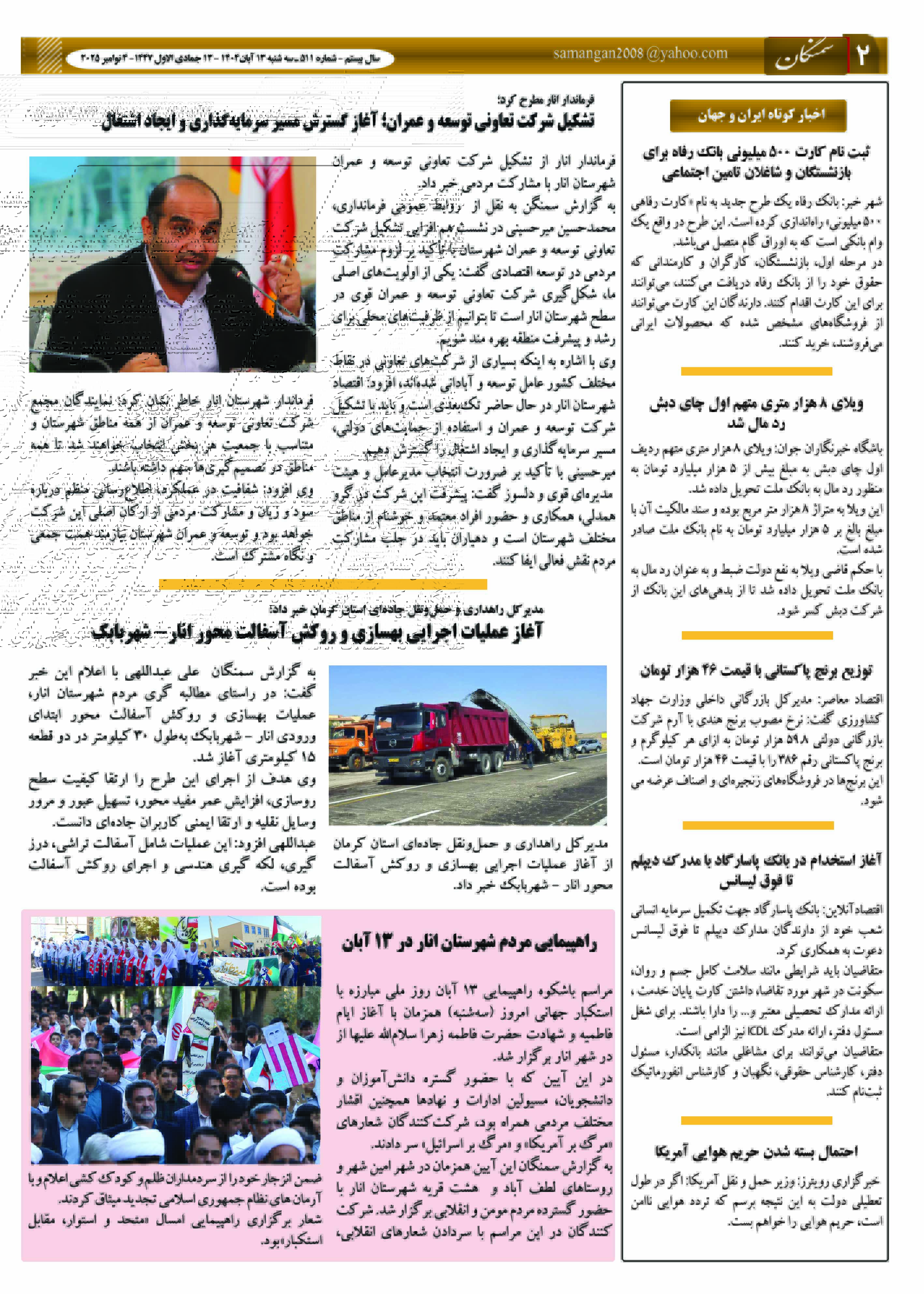 آرشیو سال 1404 نشریه سمنگان ۱۵ آبان ۱۴۰۴ نشریه سمنگان شماره 511 توسط :مدیر سایت بدون دیدگاه سمنگان 511, نشزیه سمنگان برای بهترخواندن نشریه روی صفحات کلیک کنید.