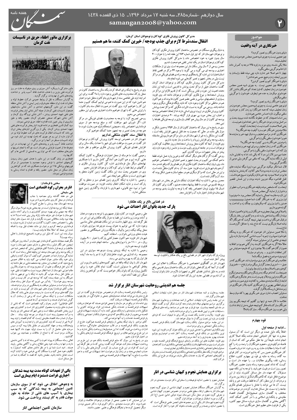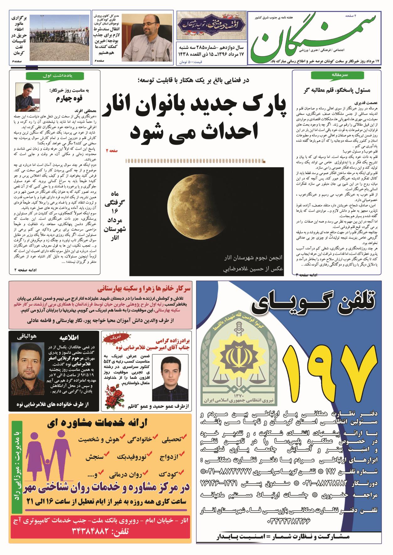 آرشیو سال 1396 آرشیو نشریه سمنگان ۱۷ مرداد ۱۳۹۶۱۱ اسفند ۱۳۹۸ نشریه سمنگان شماره285 توسط :مدیر سایت بدون دیدگاه سمنگان285, نشریه سمنگان برای بهتر خواندن نشریه روی عکسها کلیک کنید.