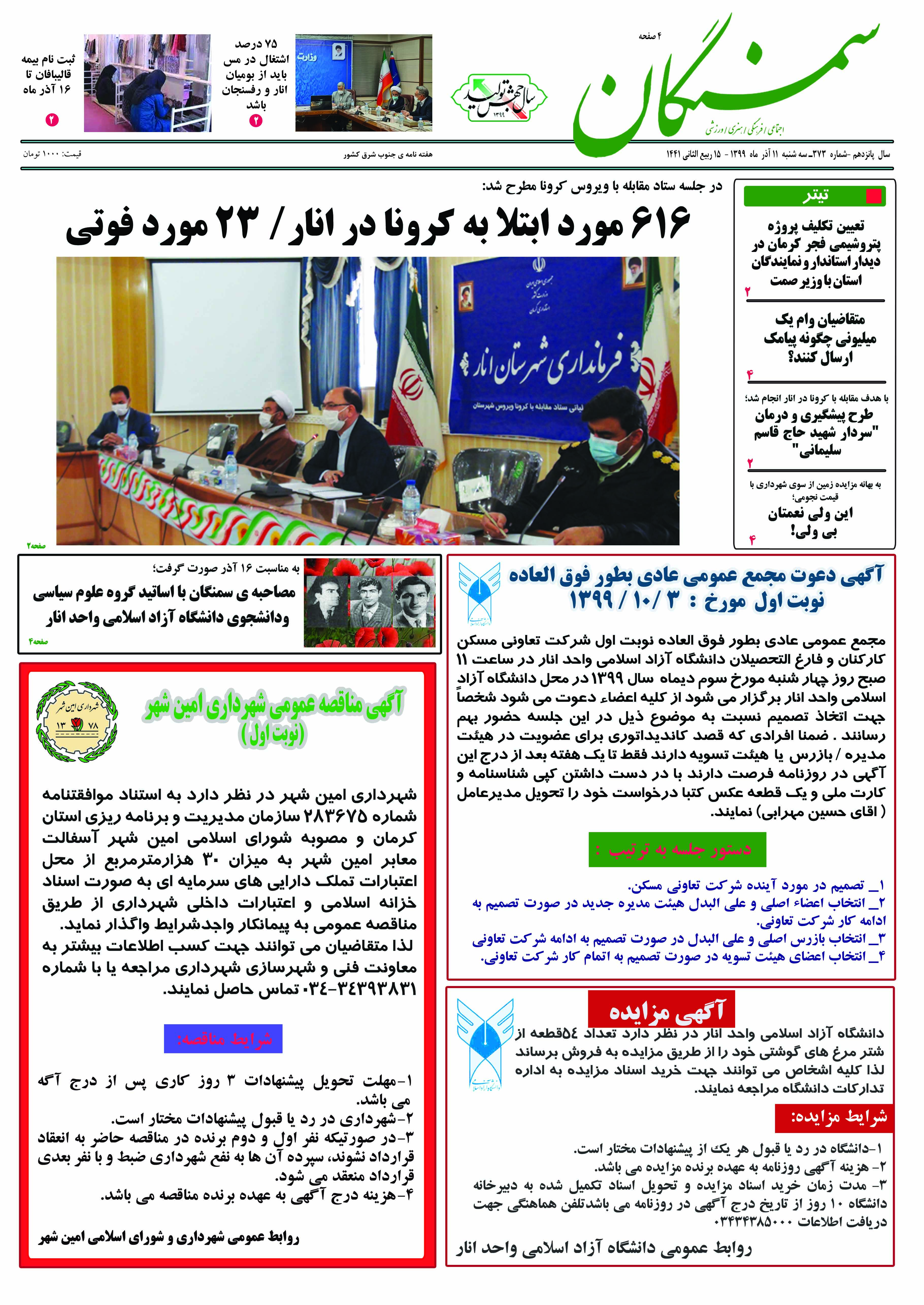آرشیو سال 1399 آرشیو نشریه سمنگان ۱۱ آذر ۱۳۹۹۱۲ آذر ۱۳۹۹ نشریه سمنگان شماره373 توسط :مدیر سایت بدون دیدگاه سمنگان373, نشریه سمنگان برای بهتر خواندن نشریه روی عکسها کلیک کنید.