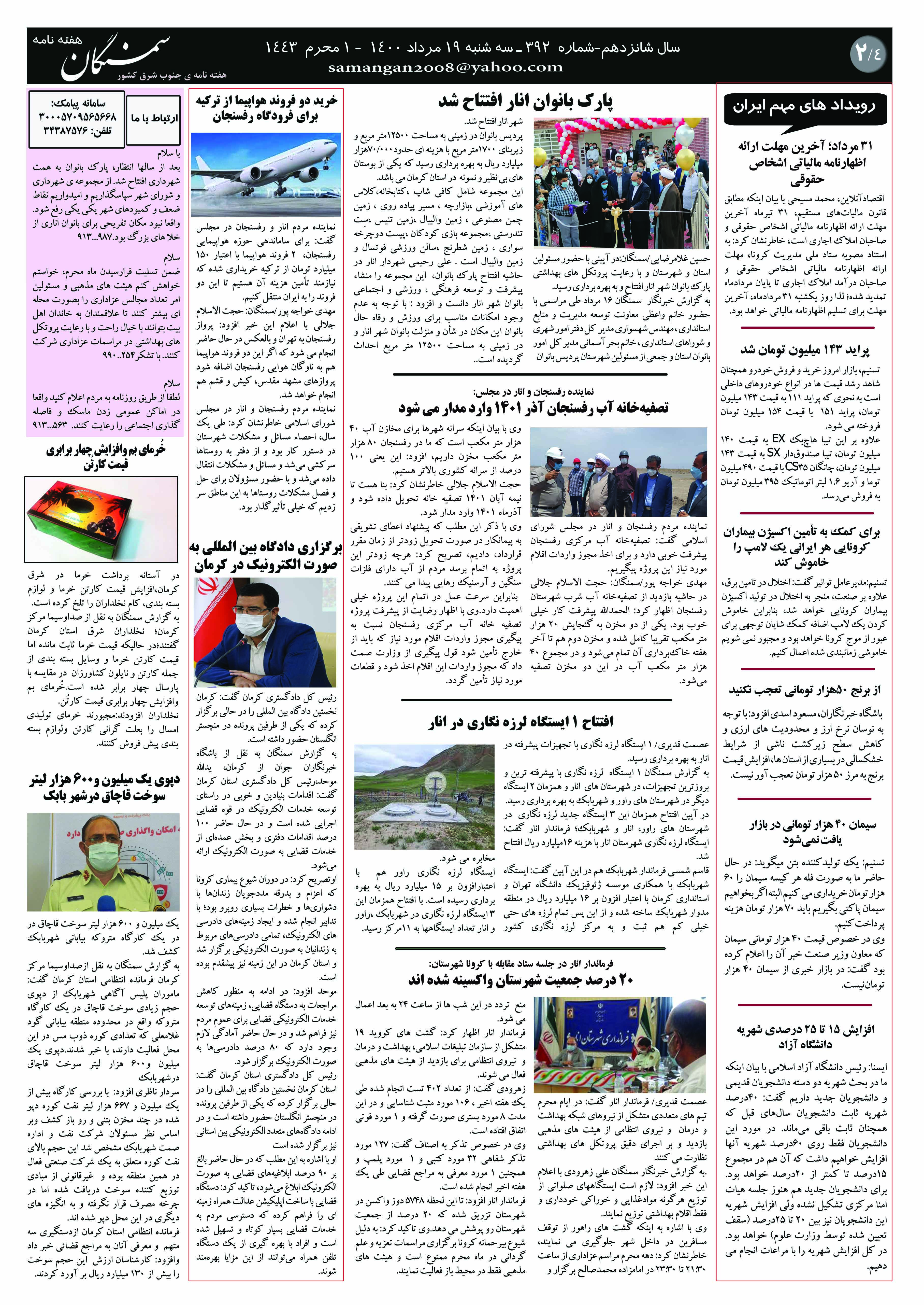 آرشیو سال 1400 آرشیو نشریه سمنگان ۱۹ مرداد ۱۴۰۰۲۲ شهریور ۱۴۰۰ نشریه سمنگان شماره392 توسط :مدیر سایت بدون دیدگاه سمنگان392, نشریه سمنگان برای بهتر خواندن نشریه روی عکسها کلیک کنید.