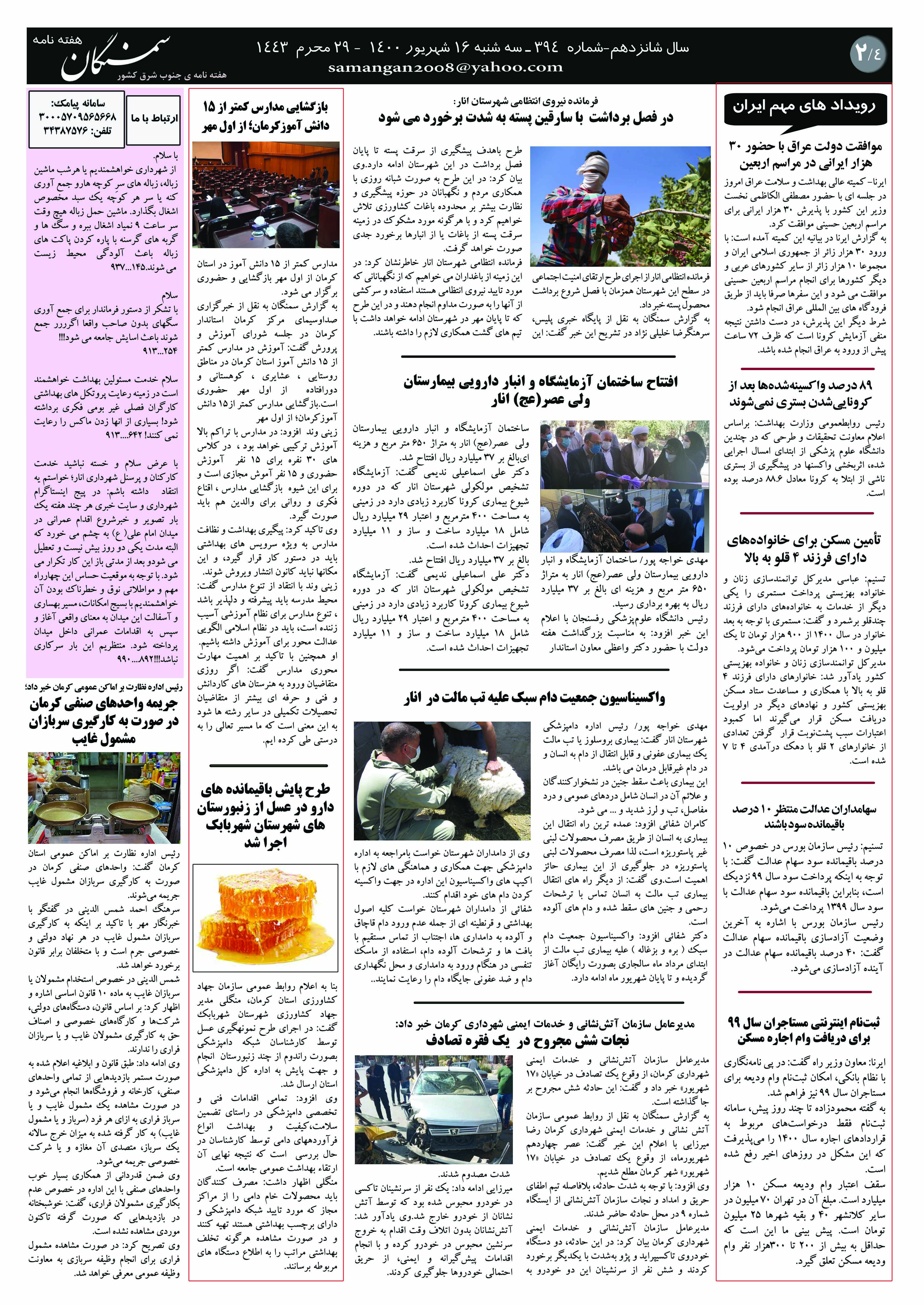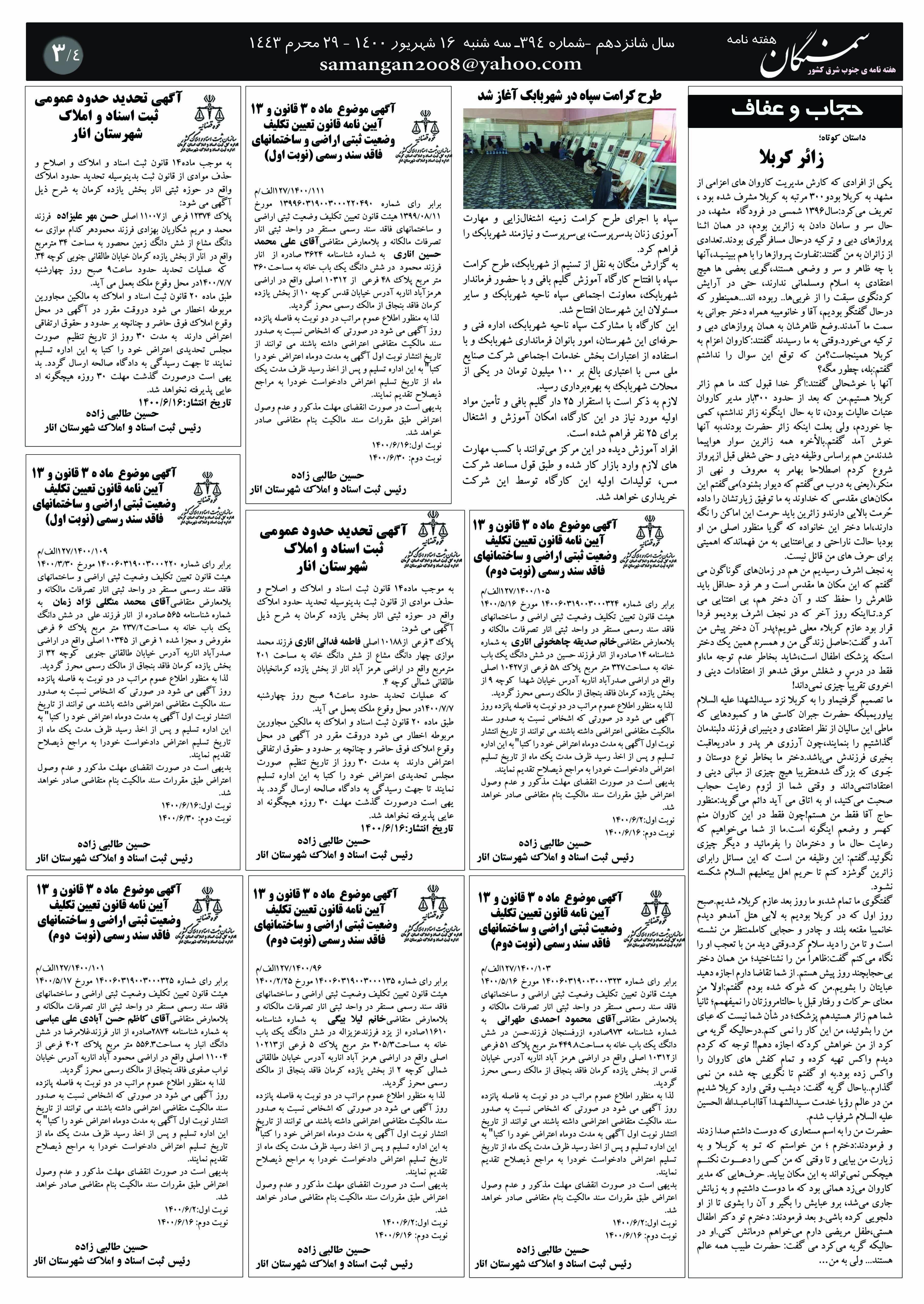 آرشیو سال 1400 آرشیو نشریه سمنگان ۱۶ شهریور ۱۴۰۰ نشریه سمنگان شماره394 توسط :مدیر سایت بدون دیدگاه برابرای بهتر خواندن نشریه روی عکسها کلیک کنید.