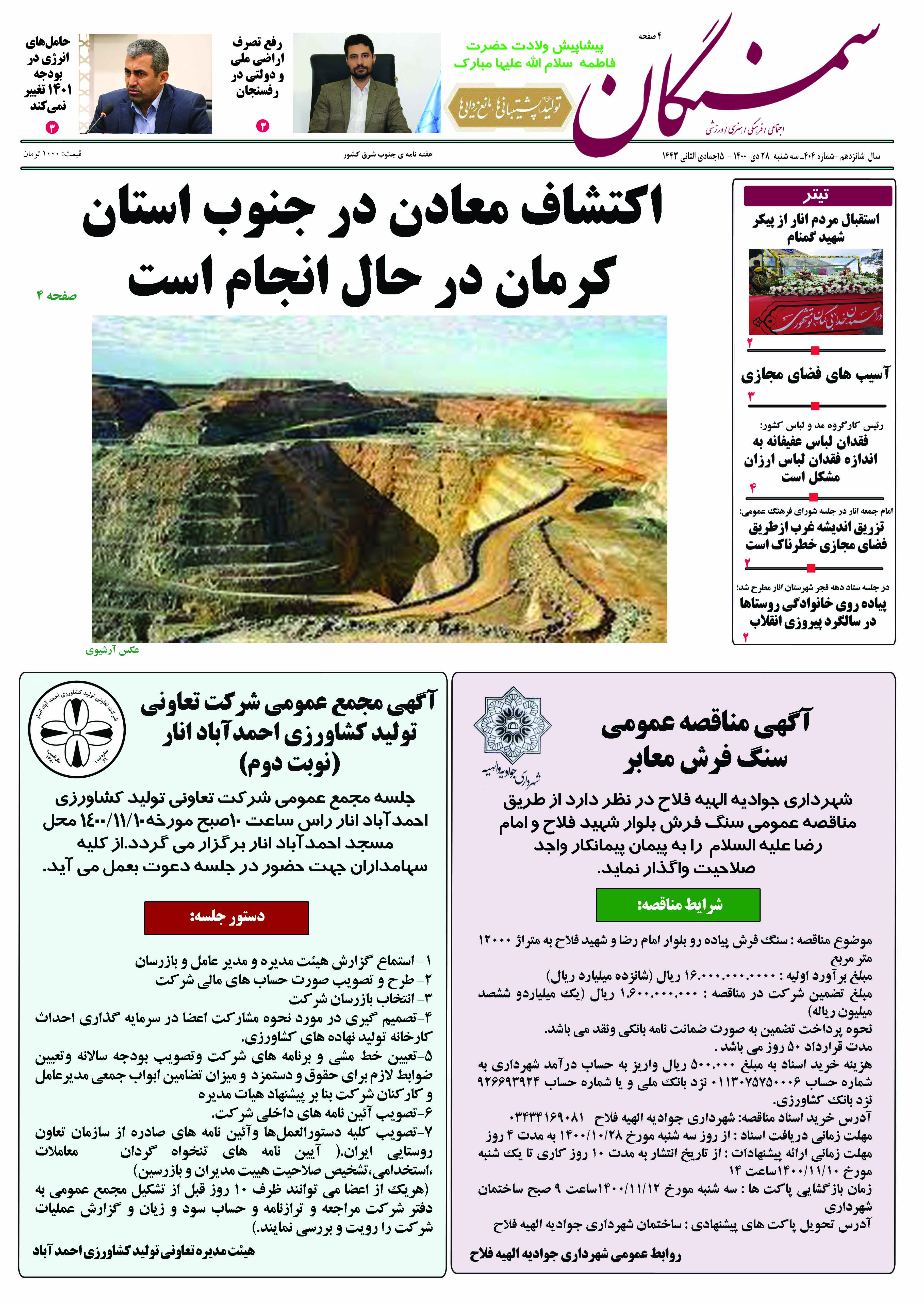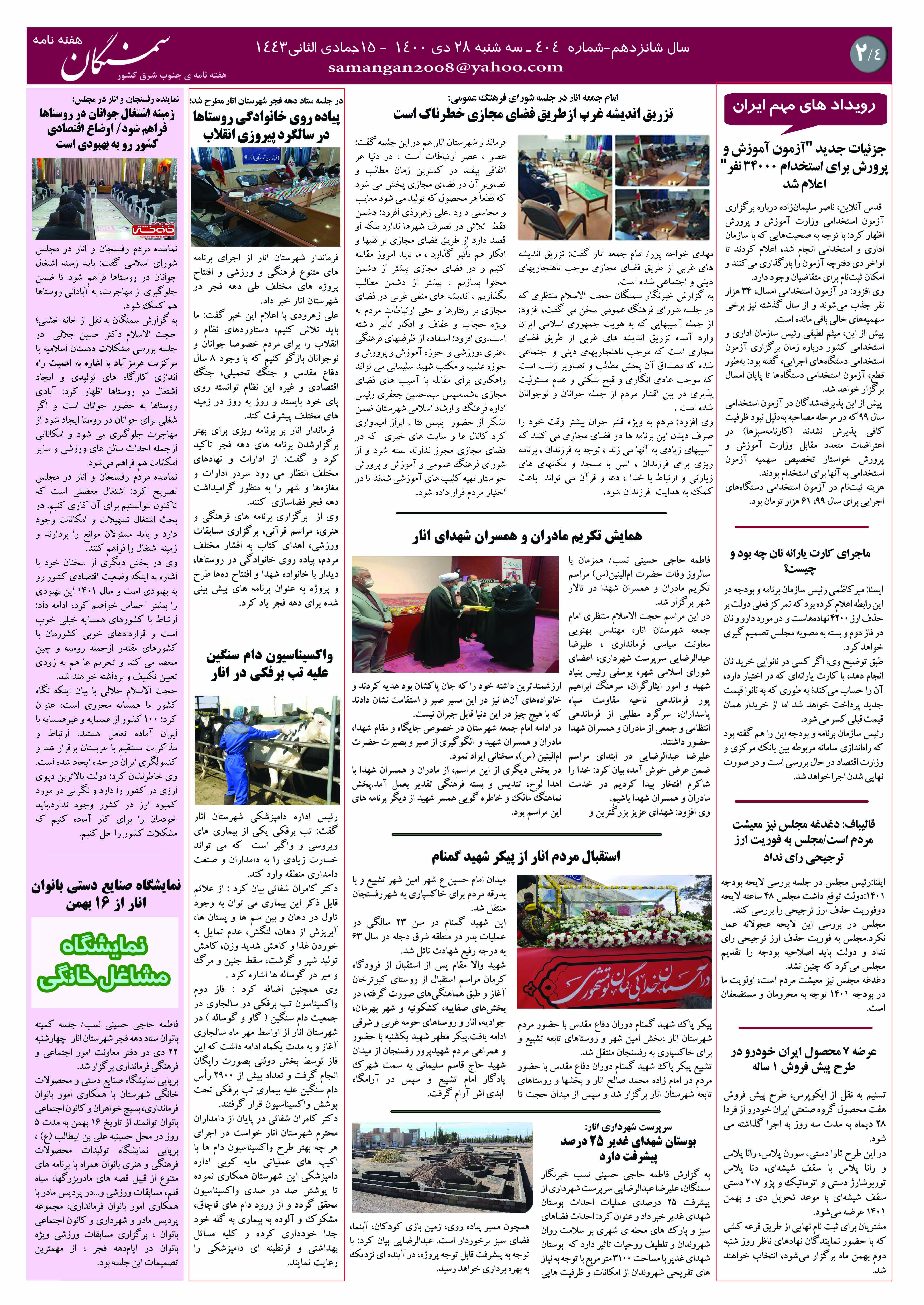 آرشیو سال 1400 آرشیو نشریه سمنگان ۲۸ دی ۱۴۰۰۲۱ اسفند ۱۴۰۰ نشریه سمنگان شماره404 توسط :مدیر سایت بدون دیدگاه سمنگان404, نشریه سمنگان برای بهتر خواندن نشریه روی عکسها کلیک کنید.