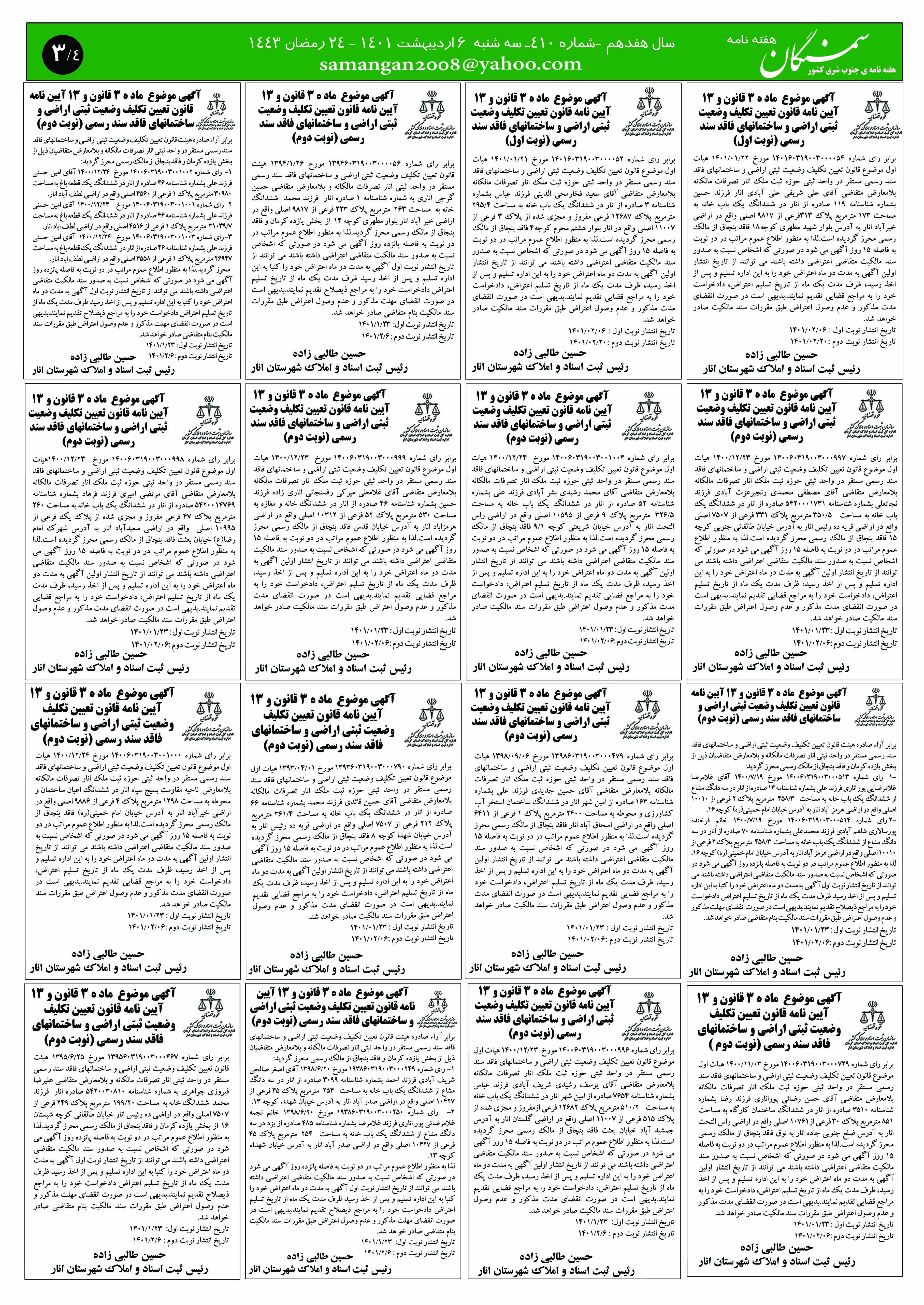 آرشیو سال 1401 آرشیو نشریه سمنگان ۱۰ اردیبهشت ۱۴۰۱۸ خرداد ۱۴۰۱ نشریه سمنگان شماره410 توسط :مدیر سایت بدون دیدگاه سمنگان 275, نشریه سمنگان برای بهتر خواندن نشریه روی عکسها کلیک کنید.