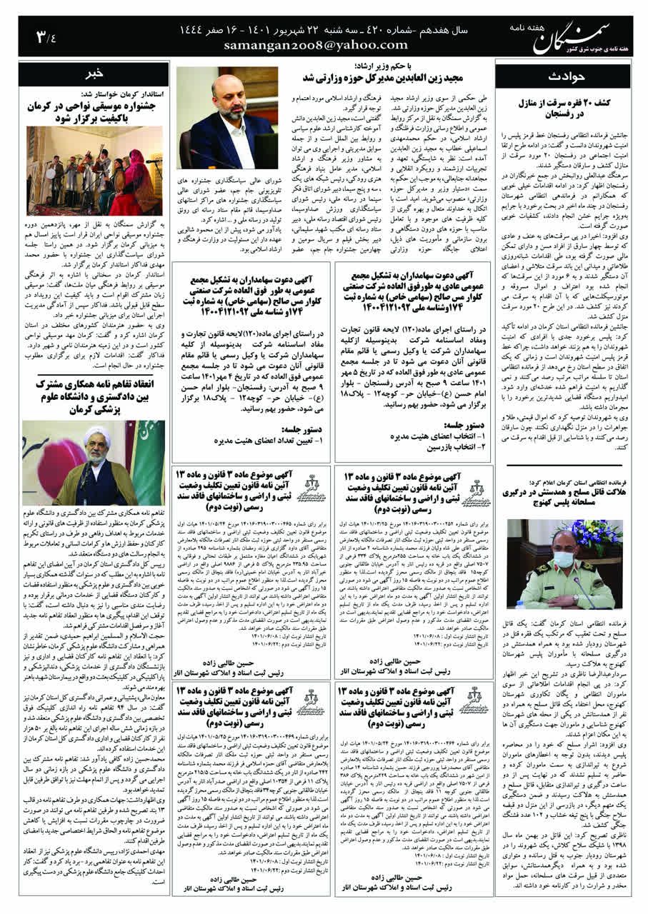 آرشیو سال 1401 آرشیو نشریه سمنگان ۲۲ شهریور ۱۴۰۱۱۸ مهر ۱۴۰۱ نشریه سمنگان شماره420 توسط :مدیر سایت بدون دیدگاه سمنگان420, نشریه سمنگان برای بهتر خواندن نشریه روی عکسها کلیک کنید.