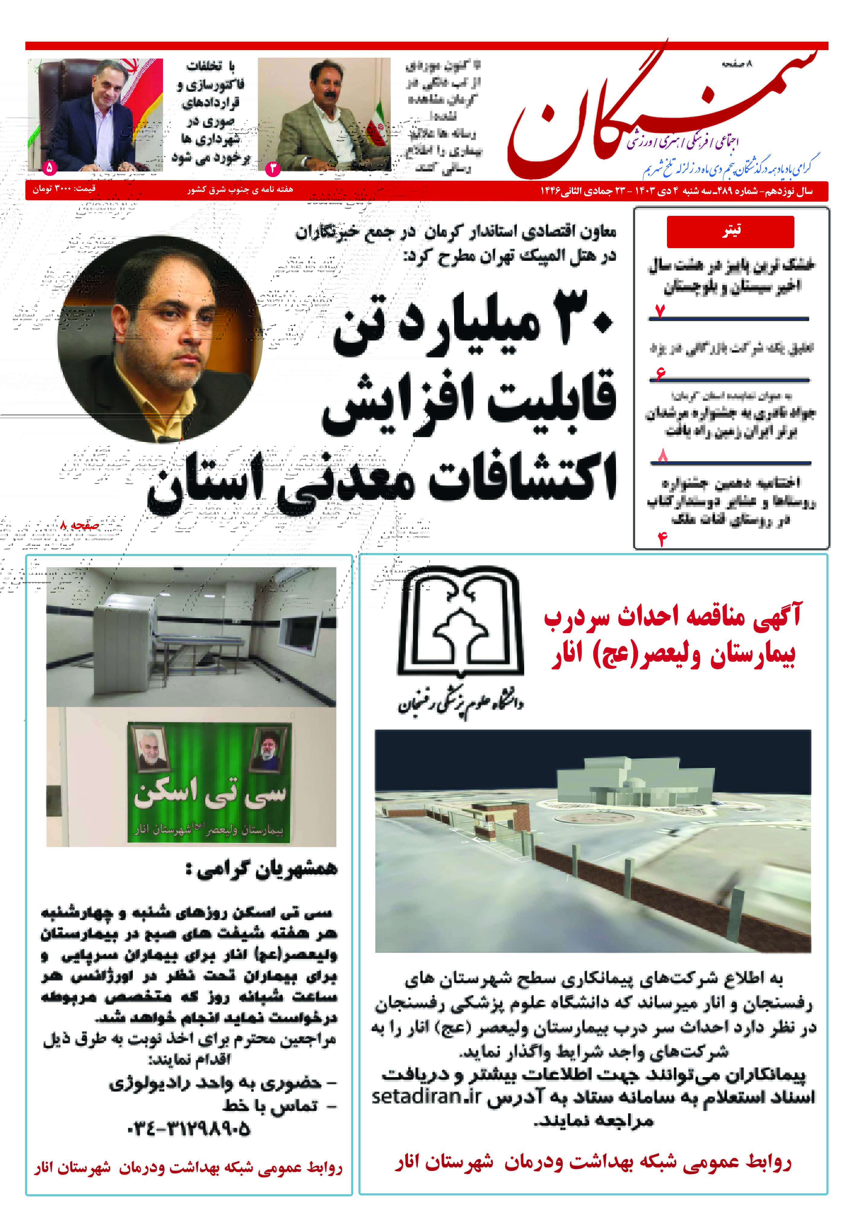 آرشیو سال 1403 آرشیو نشریه سمنگان ۶ دی ۱۴۰۳۲۷ تیر ۱۴۰۴ نشریه سمنگان ماره 489 توسط :مدیر سایت بدون دیدگاه سمنگان 489, نشریه سمنگان برای بهتر خواندن نشریه روی صفحات کلیک کنید.